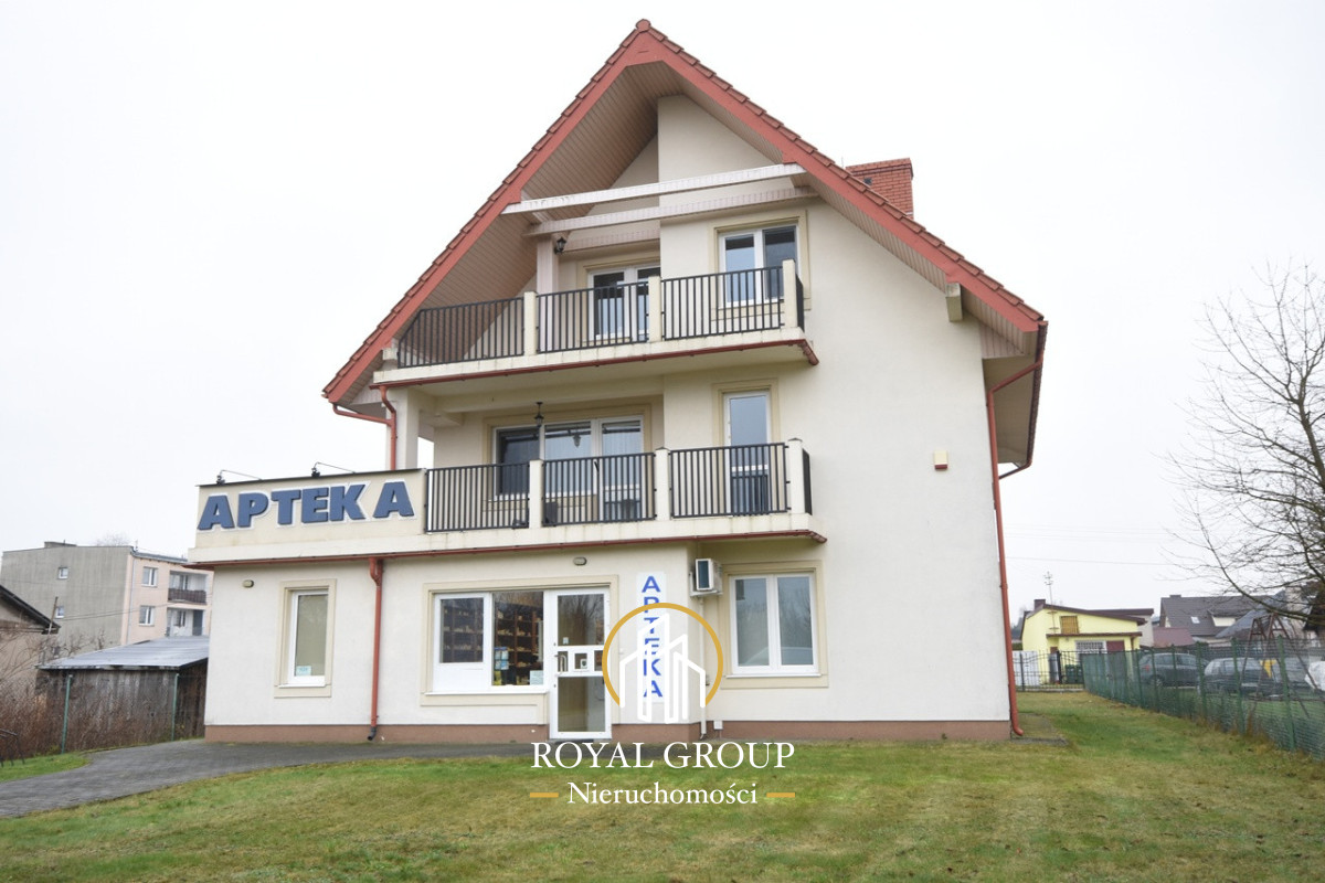Na parterze znajduje się prosperująca apteka (pow. 120 m2) z oddzielnym, niezależnym wjazdem, co stanowi doskonałą okazję inwestycyjną lub możliwość prowadzenia własnej działalności gospodarczej.