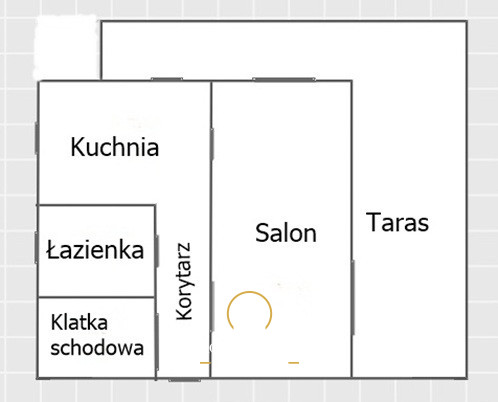 Przestronny salon z kominkiem, w pełni wyposażona kuchnia, toaleta oraz korytarz.