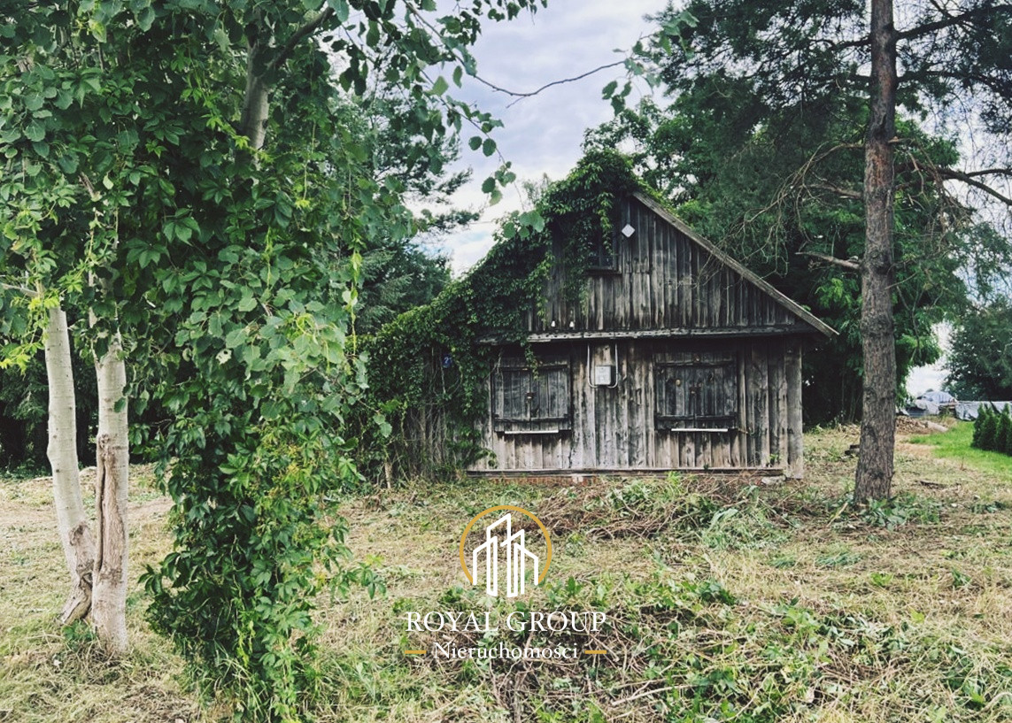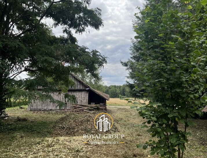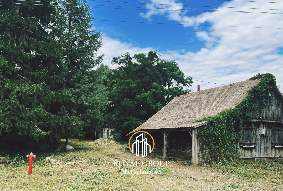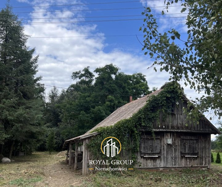 drewniany dom (do remontu lub rozbiórki), studnia, fundamenty po dawnej oborze - mogą posłużyć jako baza pod nową zabudowę.