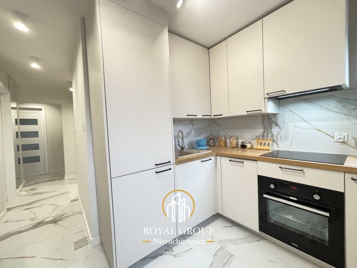 ✔️ oddzielnej widnej kuchni z zabudową kuchenną wykonaną na wymiar co zapewnia maksymalne wykorzystanie przestrzeni i nowoczesny wygląd. Dodatkowo wyposażoną w sprzęt AGD (płyta indukcyjna, piekarnik ,okap, zmywarka, lodówka)
