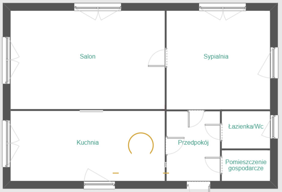 Dom oferuje funkcjonalny i przytulny układ pomieszczeń, na który składają się: