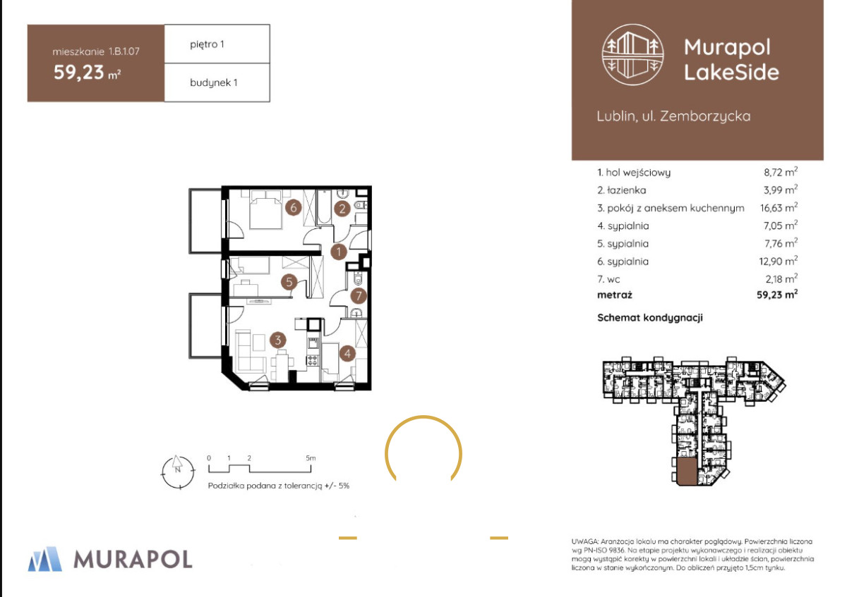 KUPUJĄCY NIE PŁACI PROWIZJI!!!Mieszkanie o powierzchni 59,23 m2 położone na 1. piętrze nowoczesnego, 5-piętrowego budynku przy ulicy Zemborzyckiej !!!.