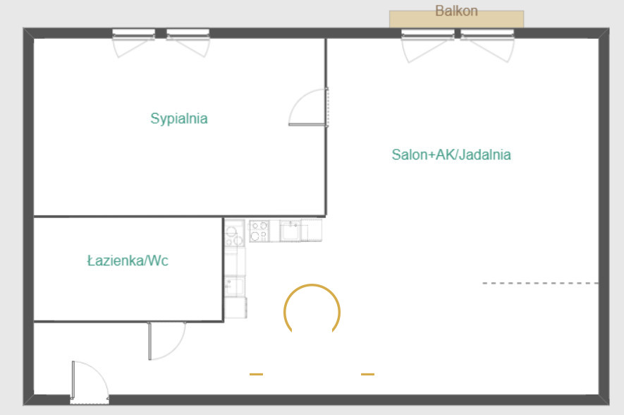 ✔️ przestronny salon z aneksem kuchennym o powierzchni ok. 30 m²,wyposażony w sprzęt AGD, w tym: (płytę indukcyjną, piekarnik, okap, zmywarkę, lodówkę).